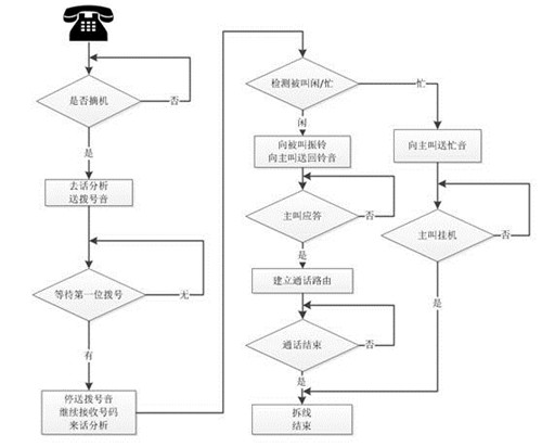 (7)應(yīng)答監(jiān)視:應(yīng)答識(shí)別回鈴音切斷鈴流及回鈴音,啟動(dòng)計(jì)費(fèi)系統(tǒng)。