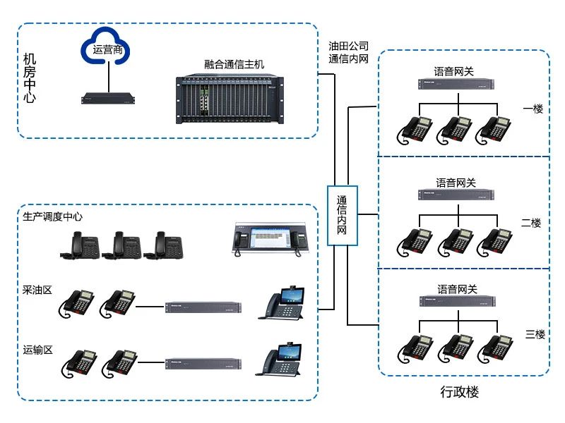 在生產調度電話系統的核心,中心機房部署了一臺申甌強大的融合通信主機。這臺主機不僅是整個系統的“大腦”,負責處理所有通信數據,還集成了電話交換、語音郵件、視頻會議等多種功能于一體。通過先進的軟硬件設計,它能夠確保通信信號的高清傳輸與穩定運行,為整個生產調度系統提供堅實的支撐。